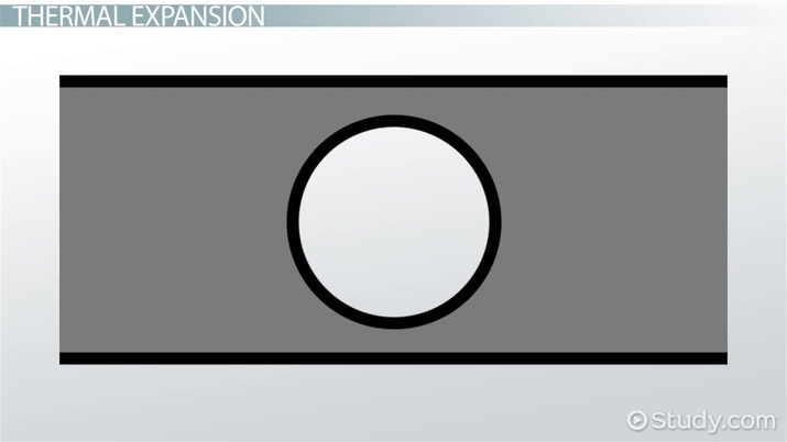 Thermal expansion is where materials expand while being heated, causing them to take up more space. Some materials expand more than others - metals expand a lot, for example. But, in general, materials only expand due to the motion of their molecules. When something gets hotter, its molecules move faster. This is, after all, what temperature is: the average kinetic energy of the molecules in a substance. Molecules that move faster use more space. So, materials contract when they cool, and they expand when you heat them up. When you expand a material, the whole shape expands - the shape stays the same, but the size increases. So, both the material and the gaps in the material expand at the same rate.