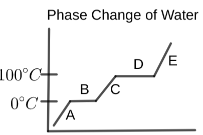 What is occurring at section "F" on the phase change diagram?