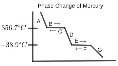 From the options below, label section "C" on the provided phase change diagram of mercury: